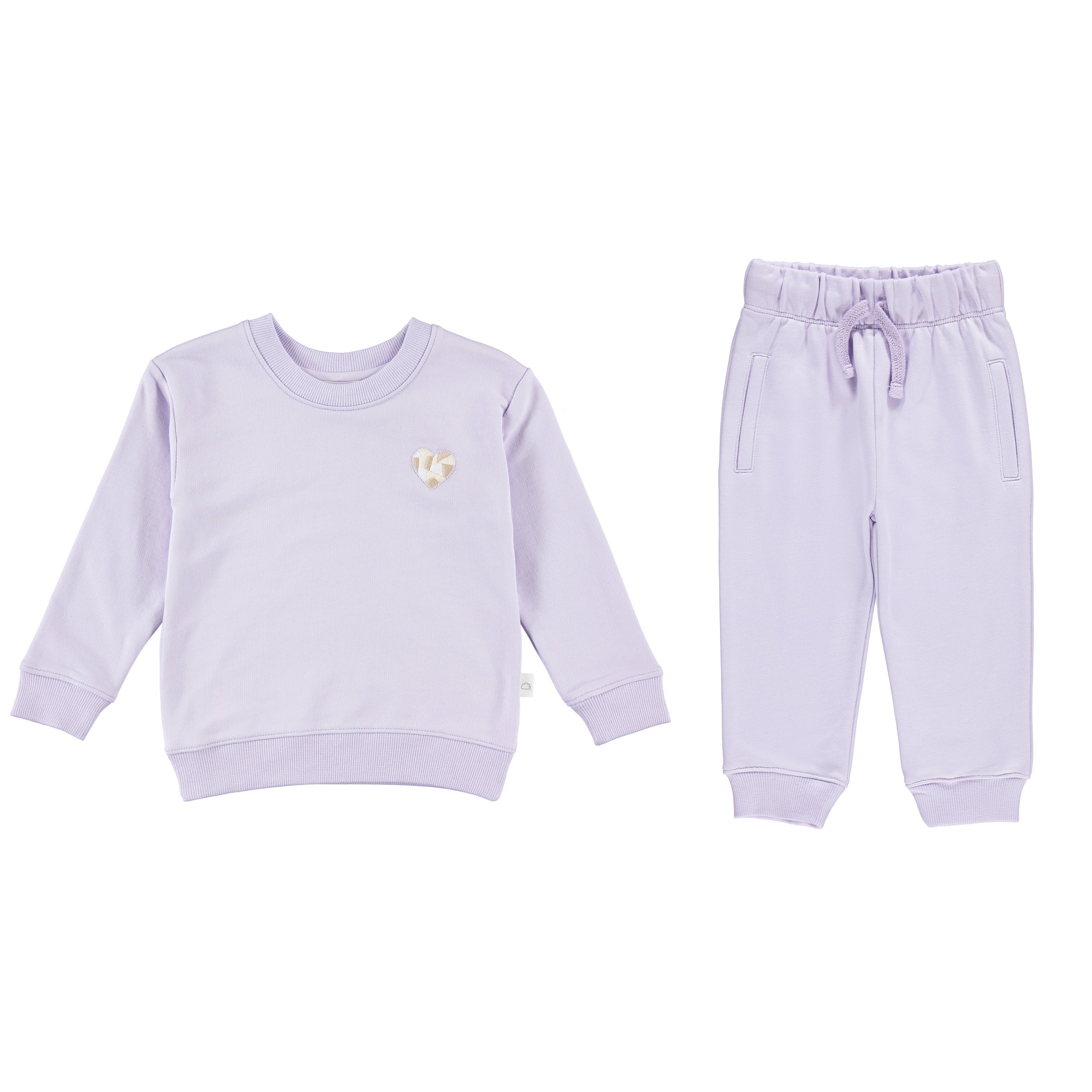 FRENCH TERRY SET W/ EMBROIDERY - HEART - PURPLE HEATHER