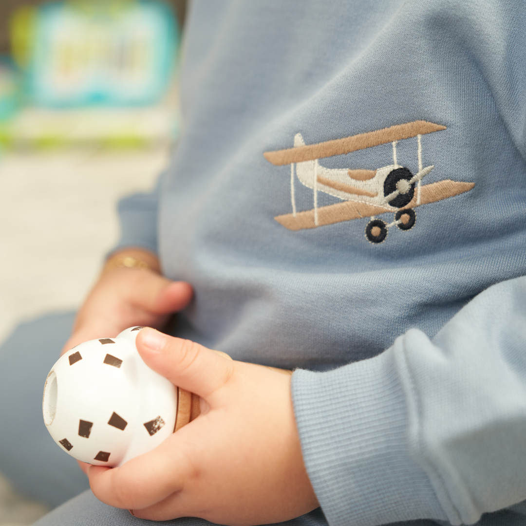 Our French Terry Set ensures a comfortable and customizable fit for your little explorer. The soft rib fabric on the cuffs and the elastic waistband add extra comfort, making this set ideal for all-day wear. Available in a wide range of vibrant colors and adorned with beautiful embroidery options, this set combines functionality with playful elegance.